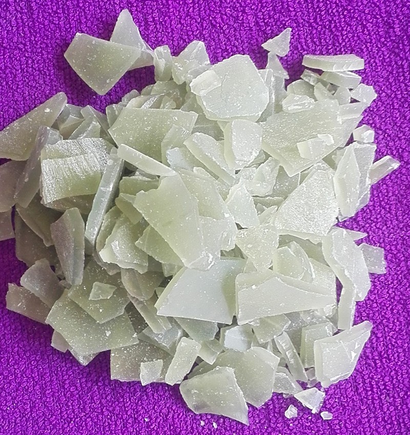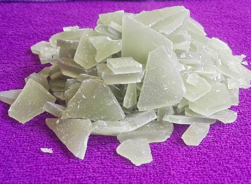 外觀與性狀:工業品為淺綠色/淡藍色片狀,會因低價鐵鹽被氧化偶爾使表面發黃。